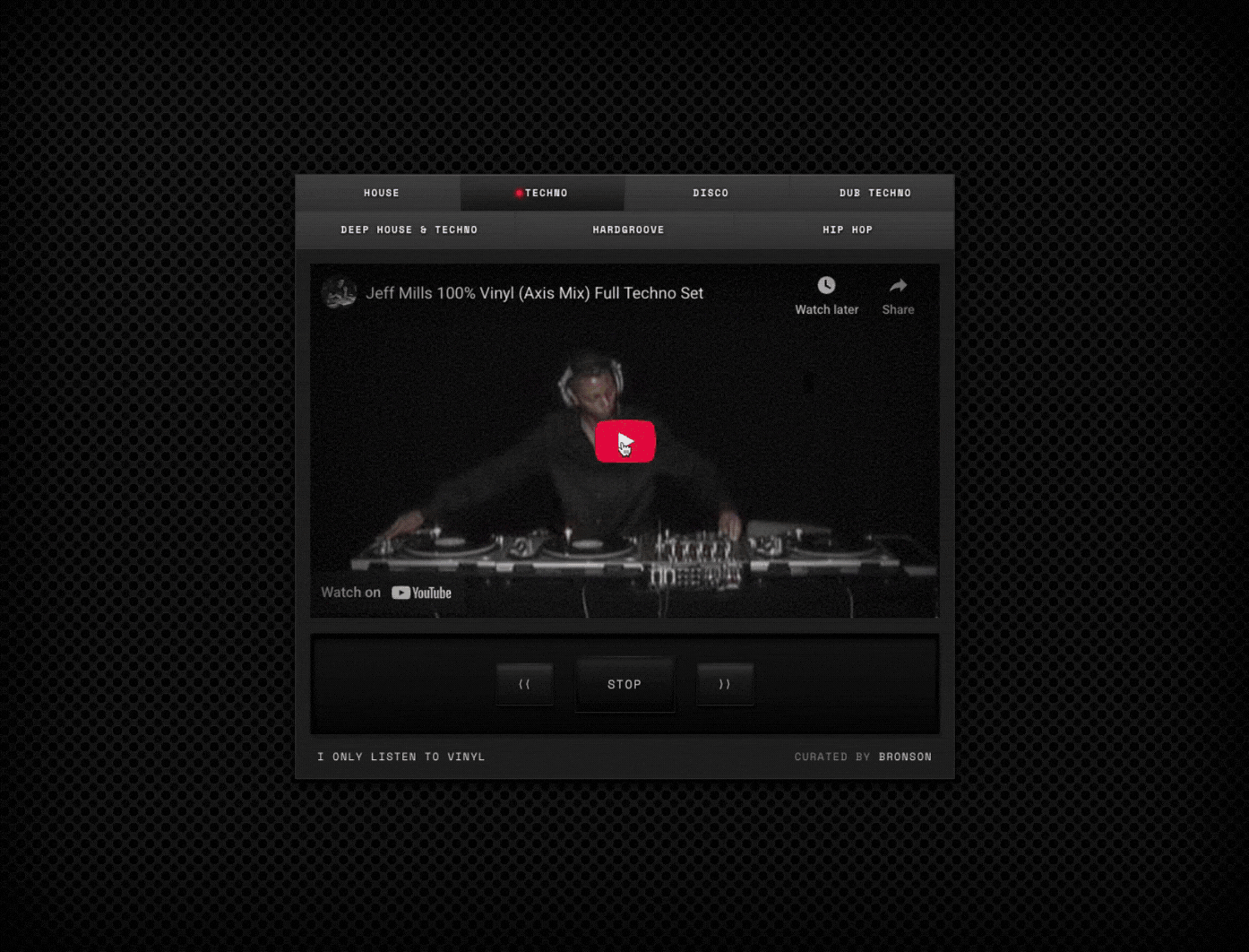 I started to notice others also appreciate human curation, so I built I Only Listen To Vinyl - a curated portal of vinyl only DJ sets.